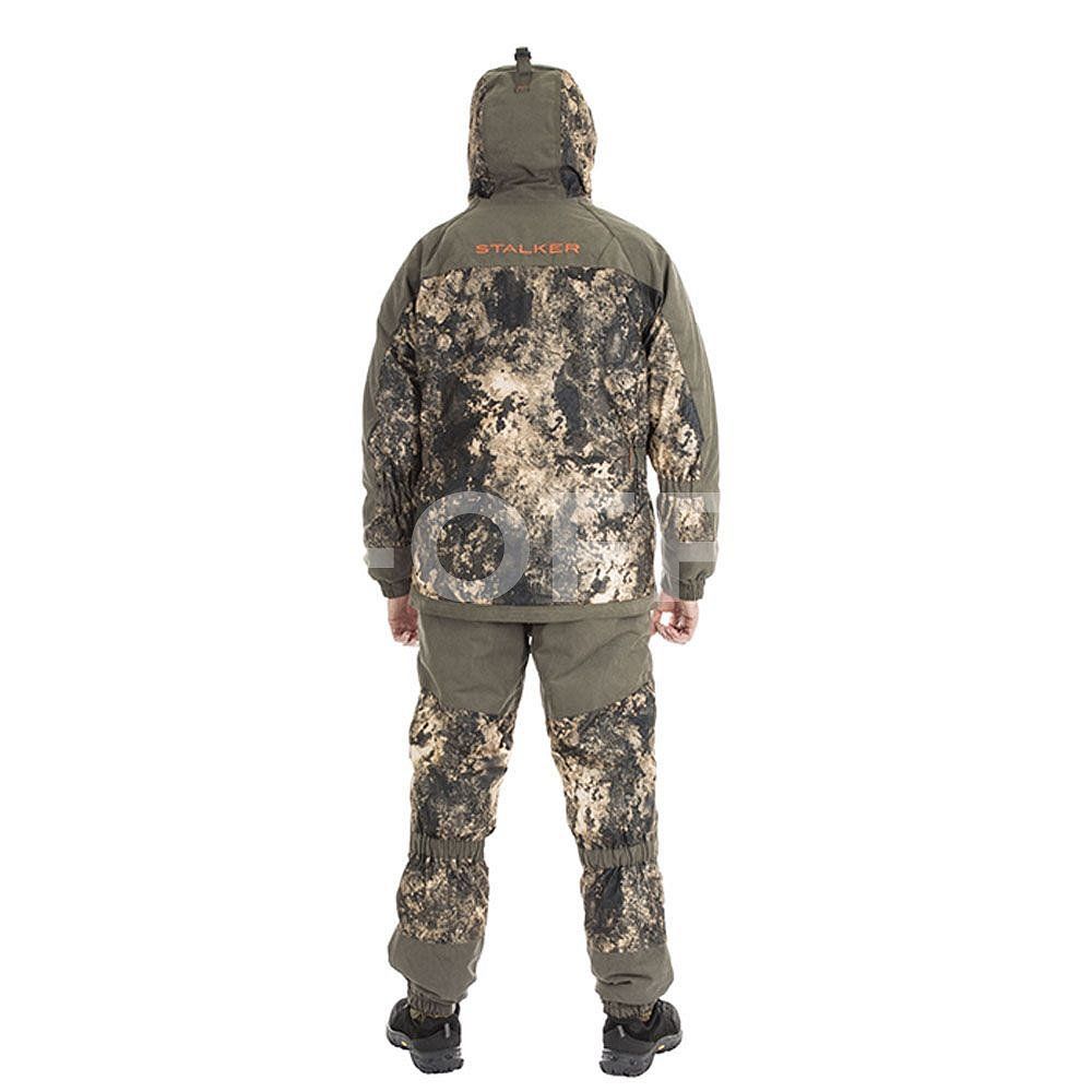 Костюм «STALKER» сделан из мягкого, бесшумного и  износостойкого материала, а также мембраны(показатель мембраны 8000/5000), которая обладает отличными противоветренными и влагозащитными свойствами.