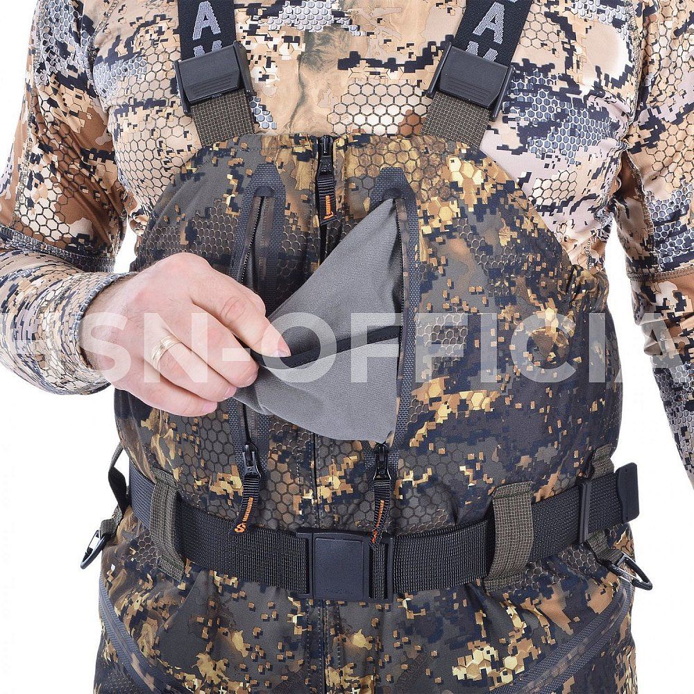 Для дополнительной защиты и комфорта при выполнении особых задач зона локтя в костюме, а также зоны колен и седалища усилены неопреном.