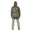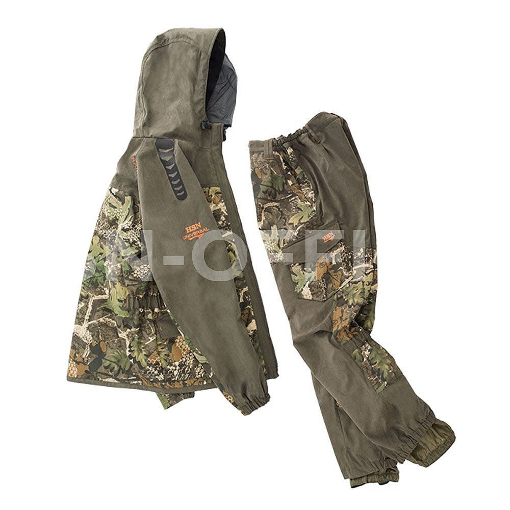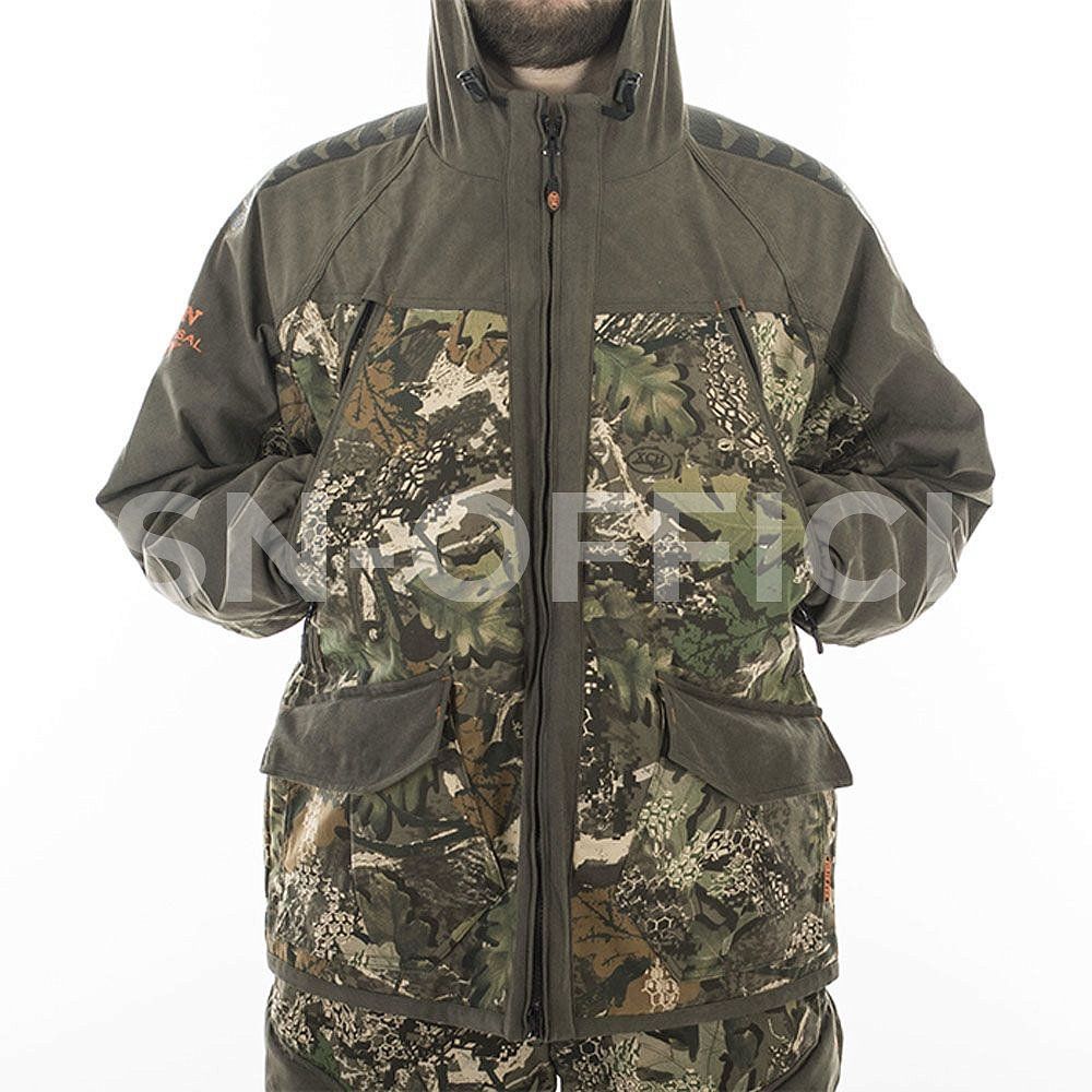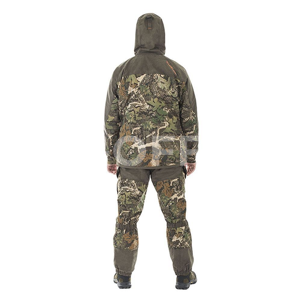 Костюм выполнен из мягкой, бесшумной, смесовой ткани с пропиткой Teflon®, обладающей отличными ветро- и влагозащитными свойствами, а также повышенной износостойкостью. Отделка выполнена из мембранной ткани Finlandia.