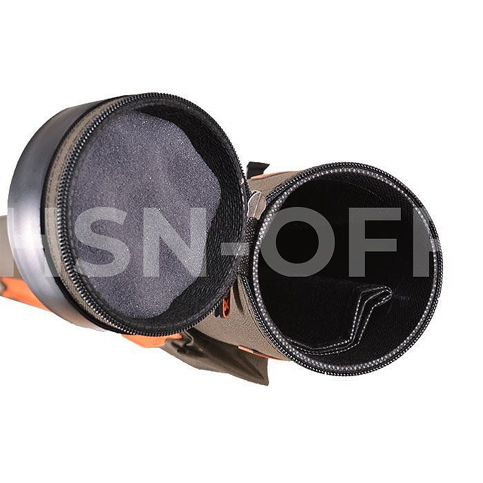 Сделан из пластмассовой трубы, обтянутой тканью Oxford(водостойкая). Внутри и по бокам обклеена ППУ 2 мм. Один конец закрыт специальной заглушкой, другой - на молнии. На донышке есть вставка из паралона для защиты. Для более удобного переноса в конструкции тубуса предусмотрен ремень на плечо и ручка. Есть один большой карман. В тубусе одновременно могут поместиться несколько спиннингов.