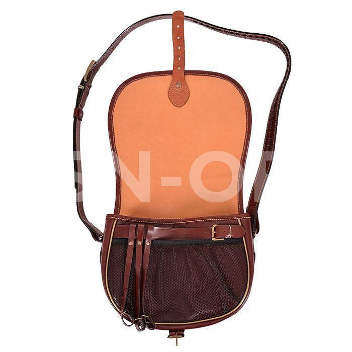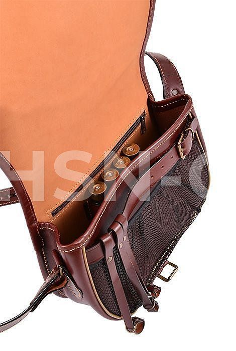 В сумке есть специальный сетчатый мешок для дичи. В производстве применяют итальянскую фурнитуру, почти не звенящую и не бликующую, а раскрой изделия выполняется на специальном для этого оборудовании, что обеспечивает отличное качество. Ягдташ состоит из одного отделения и дополнительного кармана для хранения документов, имеет подвеску Утятницу и патронташ для четырех патронов. Кожа из которой выполнено изделие долговечна, устойчива от солнечных лучей, оружейного масла и воды.